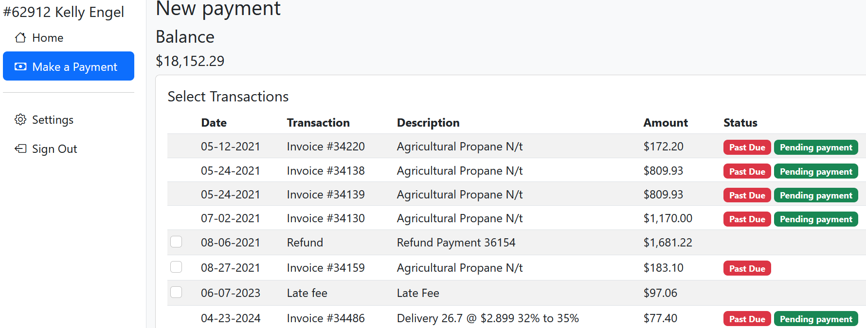Customers can view open item status and apply payments to selected items.